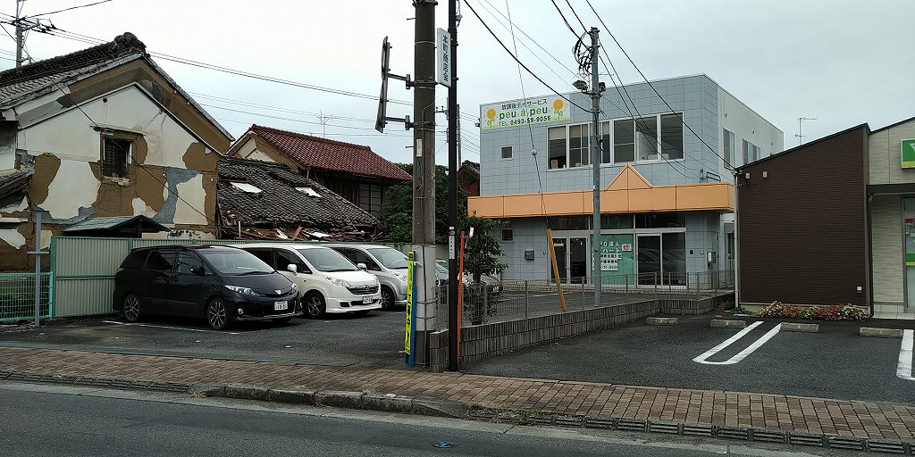 | 外観(駐車場も完備しています。) | 入口(階段で2階へおあがりください。) |